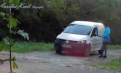 Amateur crossdresser Kellycd2022 sexy milf Saturday afternoon drive in suntan pantyhose and fishnet stockings masturbating cumshot